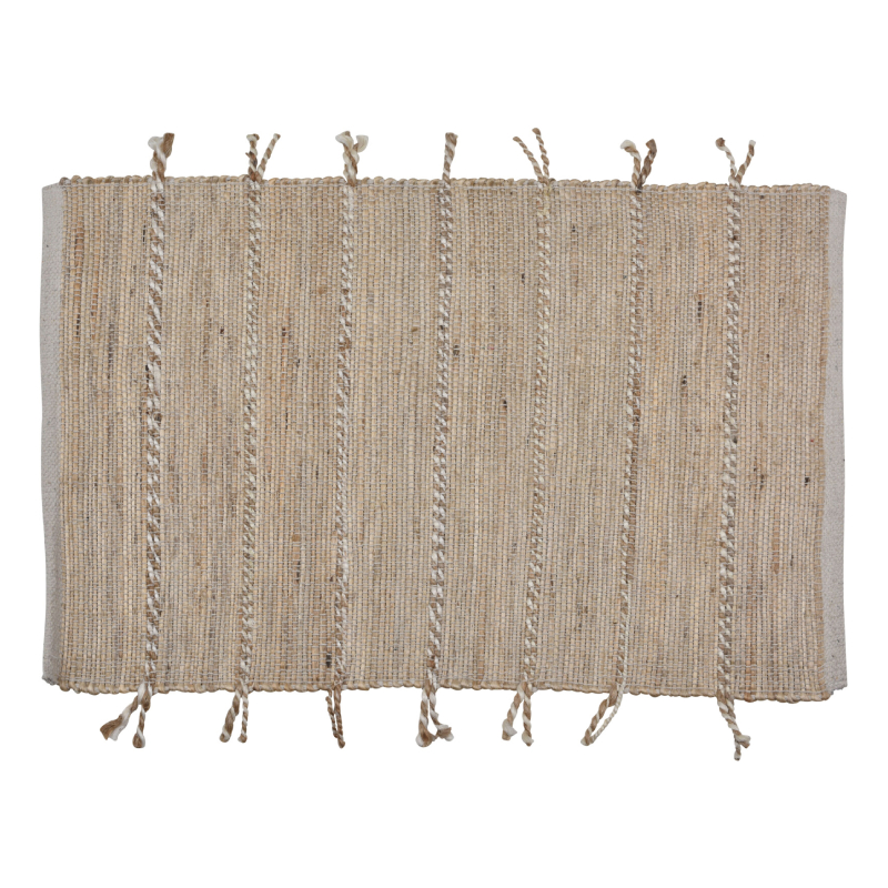 Jute rug 70 x 140 cm beige with fringe, cotton A35940280