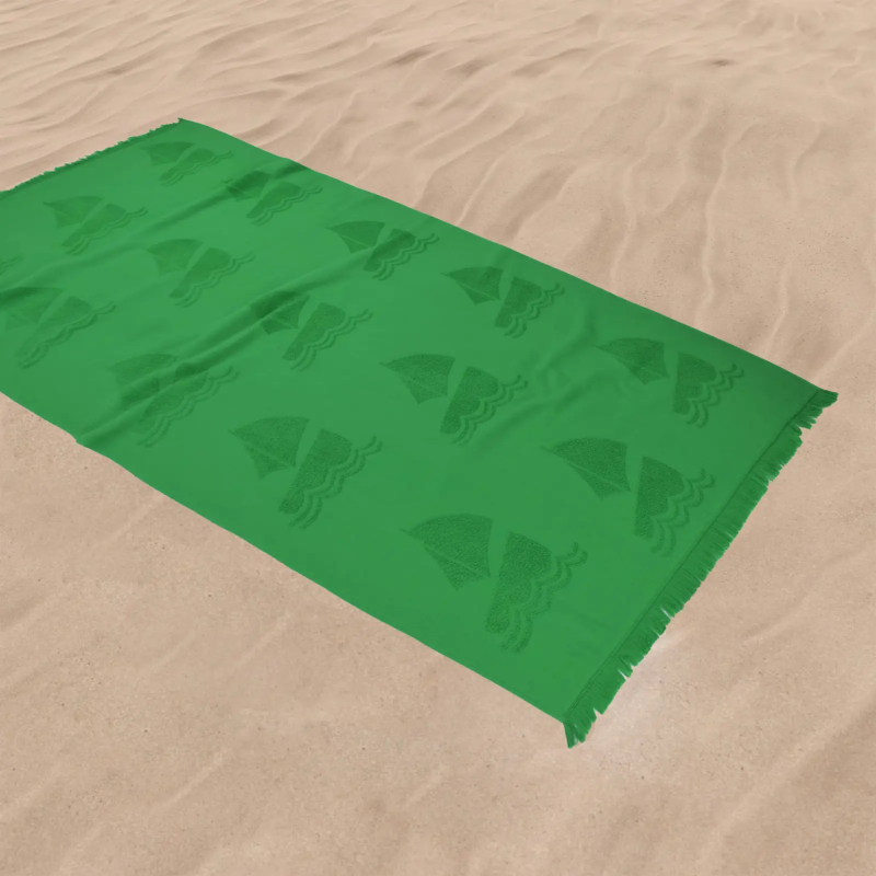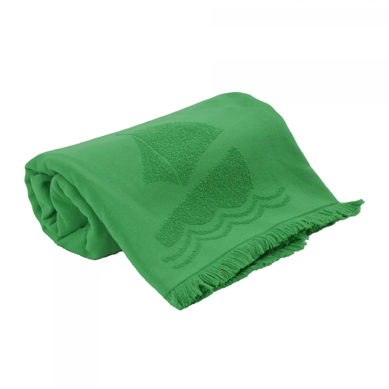 Beach towel 100 x 170 cm, 100% cotton 360 g/m2 Boats green.