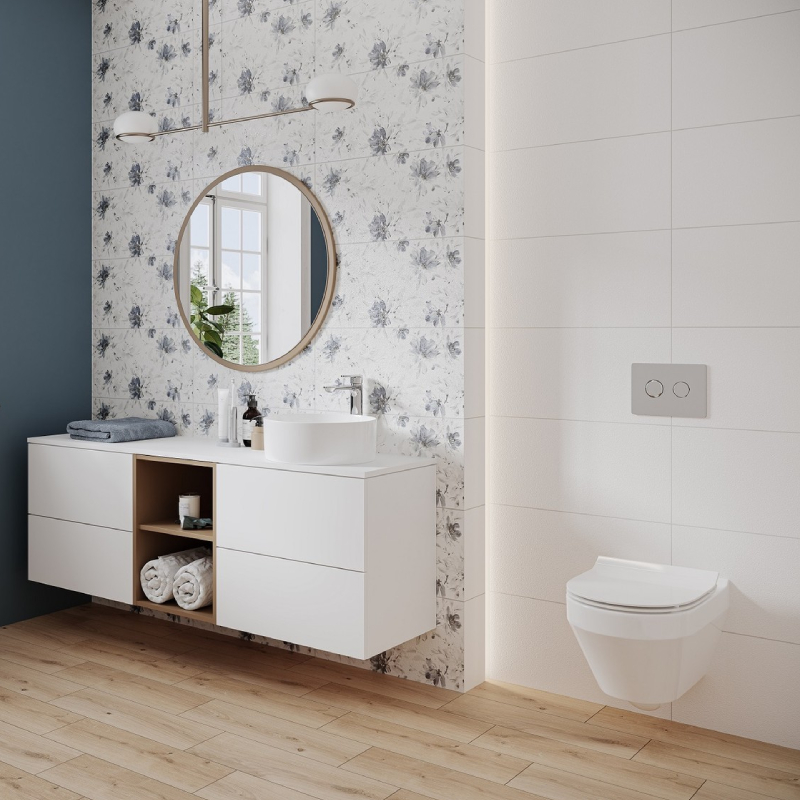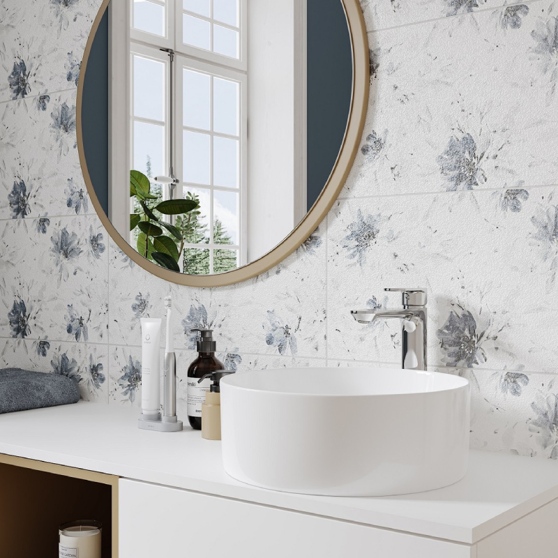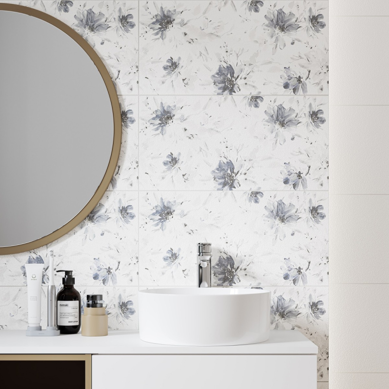 Decor tile Floral Landscape 29.7 x 60 cm white matte micro CERSANIT.