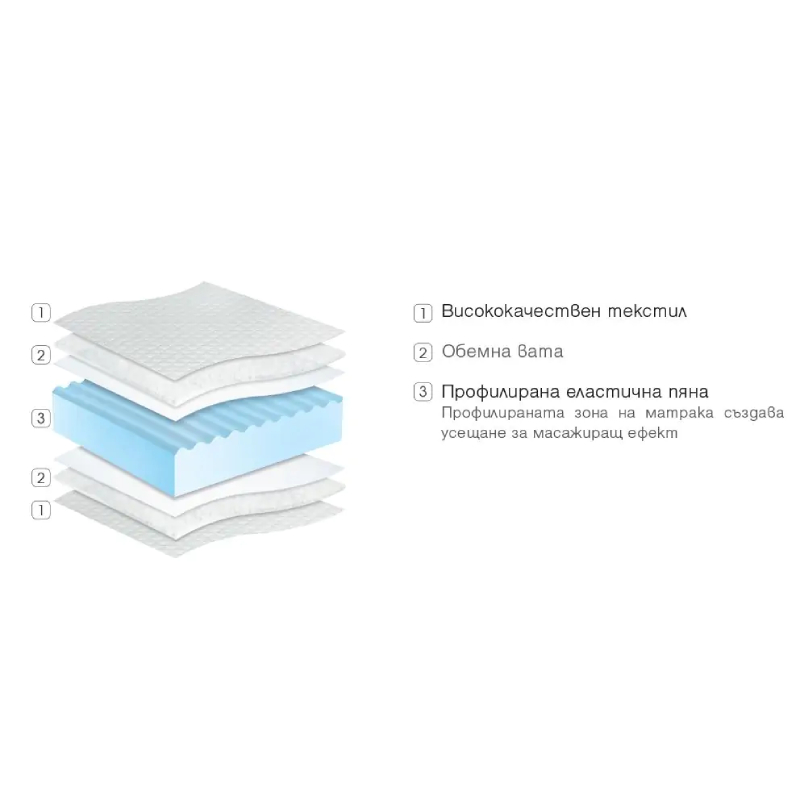 Thanks to the single-sided profiled elastic foam, the mattress provides a gentle massage effectthat stimulates blood circulation and helps relax muscles. The firm level of support makes it an excellent choice for people who prefer stability and orthopedic comfort.