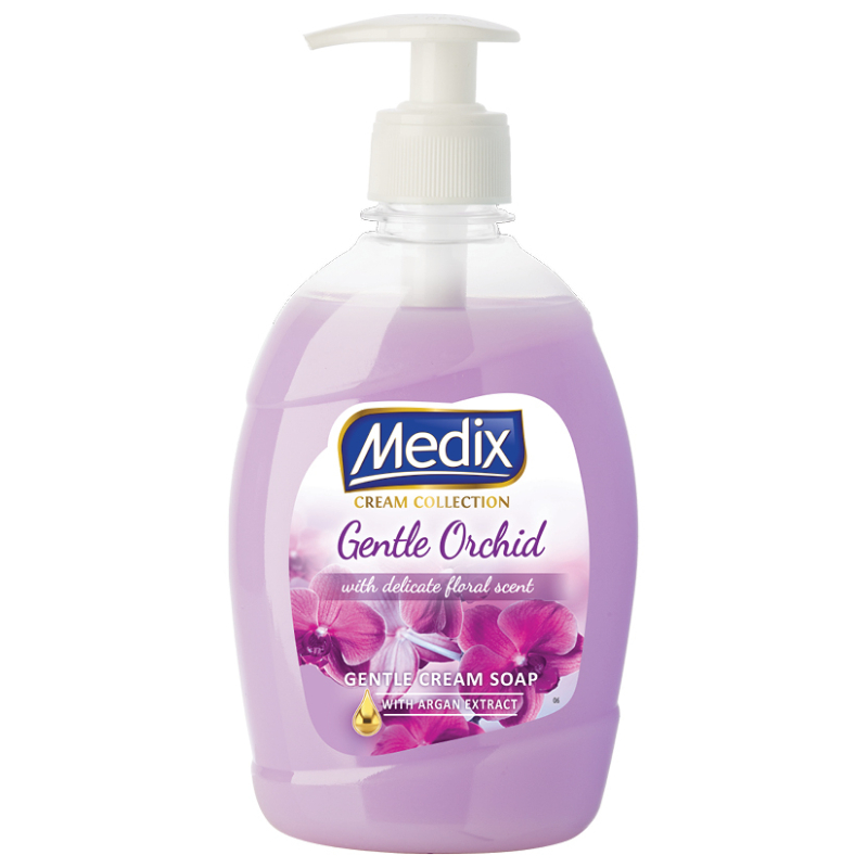 MEDIX liquid orchid soap. With a pump. The product is a creamy liquid soap with a delicate orchid fragrance. It is enriched with aloe vera extract, while giving softness to the skin. It is suitable for sensitive skin.