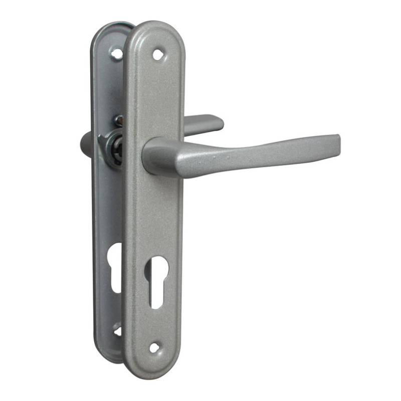 Secret door handle from the Alania series of the METAL brand. Set of 2 Center distance: 70 mm. Material: steel. With polymer coating. Color: gray.