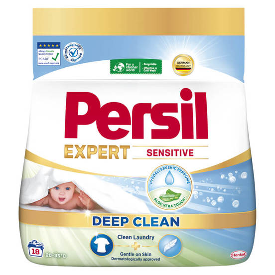 The washing powder for white fabrics Persil XS Sensitive is available in a package of 990 g for 18 washes.