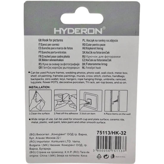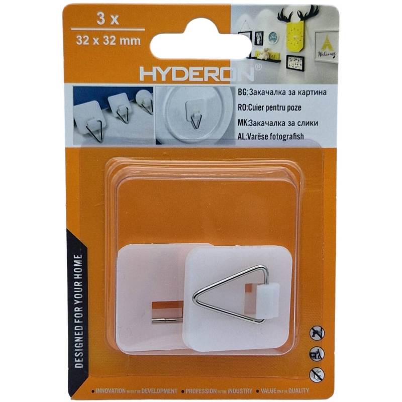 Picture hanger self-adhesive 32 x 32 mm, white HYREDON brand. Package: 3pcs/pack