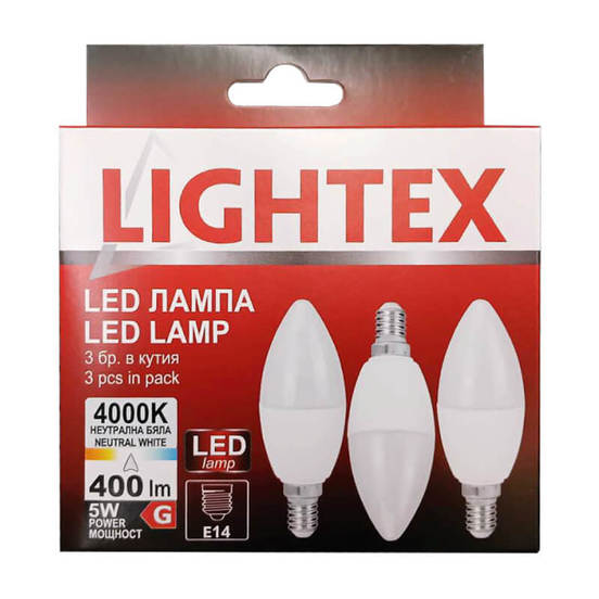 LED Lamp 5 W E14 400 lm 4000 K candle B35 3 pcs. in a LIGHTEX box.