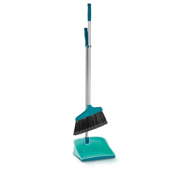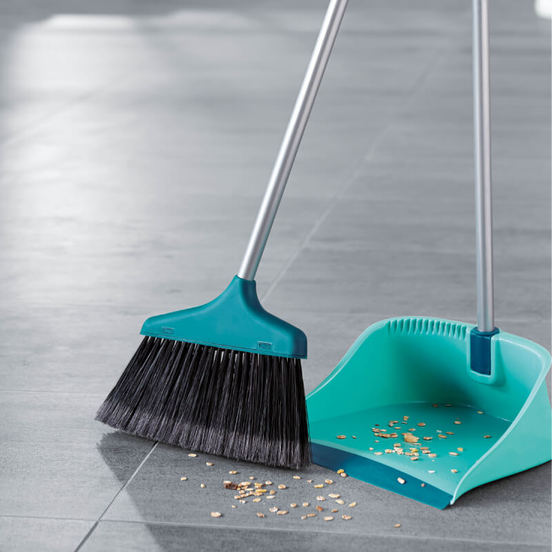LEIFHEIT broom/brush with rubber edge. The broom has a rubber tip, which makes it easier to clean uneven surfaces and provides support in the process. In addition, the broom has a space-saving folding function.
