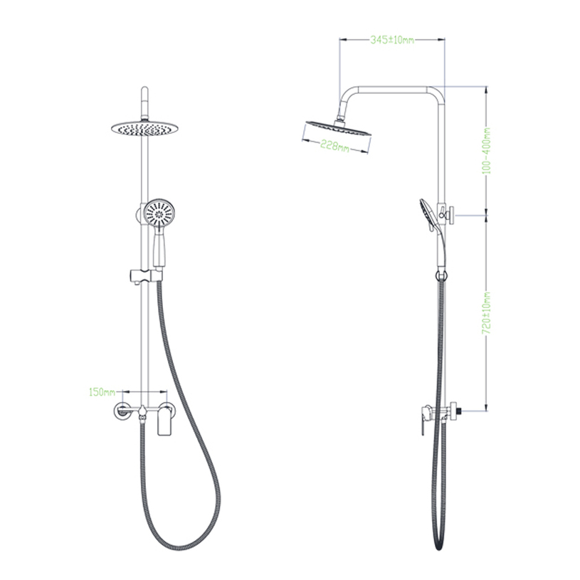 - Shower head: Round, with a diameter ⌀22.8 cm - ensures even distribution of the water jet
