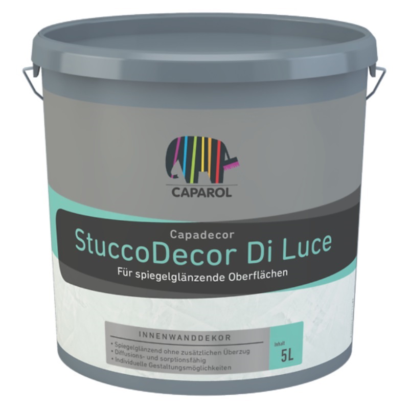 Capadecor StuccoDecor Di Luce is a high-quality interior Venetian plaster designed to create exquisite decorative surfaces with a unique marble effect and mirror gloss. This product offers a translucent coating with an impressive shine that does not require additional varnishing. The water-based plaster allows machine tinting in over 1300 colors through the ColorExpress system, which allows for personalized color solutions suitable for any interior style. Excellent vapor permeability and resistance to wet rubbing guarantee long-lasting beauty and easy maintenance.