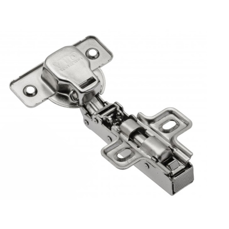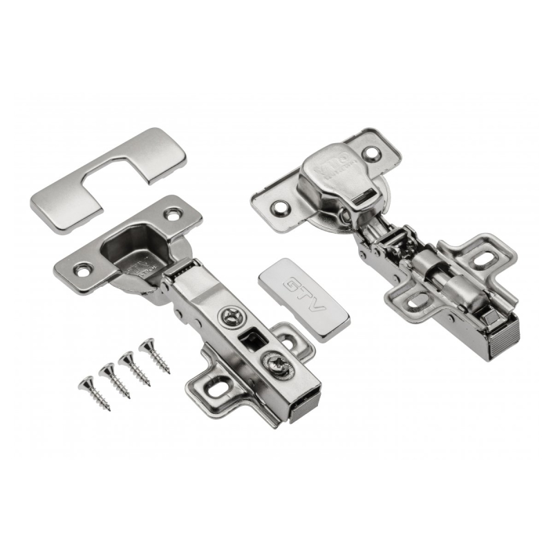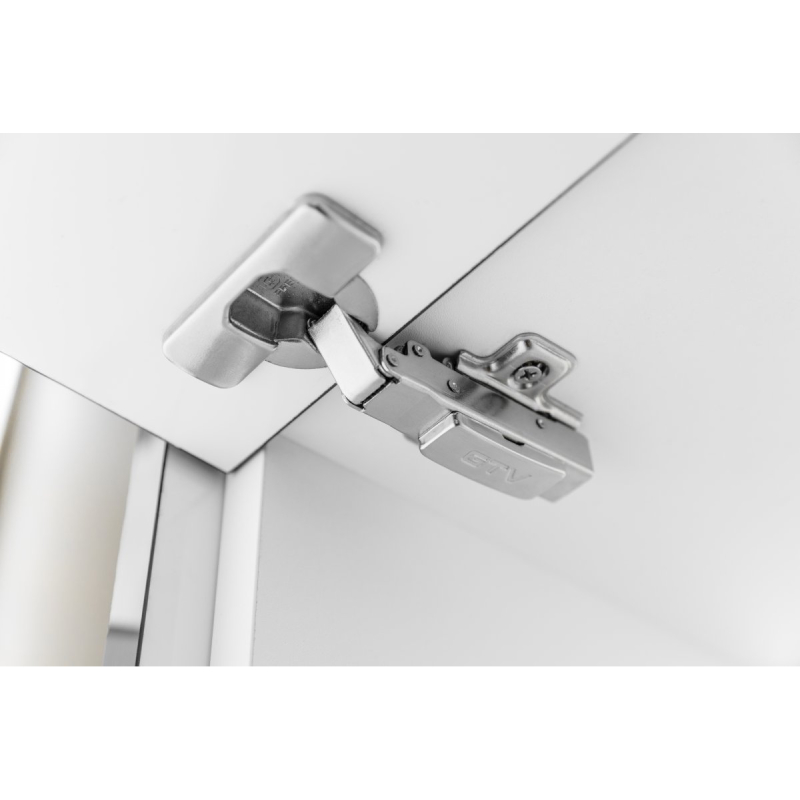 Furniture hinge with built-in hydraulic metal damper, which helps to smoothly retract/close the doors. The damper has a precisely calculated force - no need for pre-setting. The advantage of this hinge model is that the risk of damaging them due to an accidental impact with an object is eliminated - the damper is hidden in and protected by the metal body of the hinge.