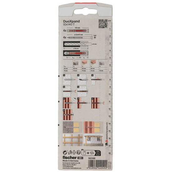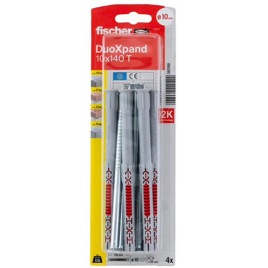 Fischer DuoXpand frame anchor with countersunk screw for multiple fastenings of non-load-bearing systems in concrete, masonry and aerated concrete. Thanks to its special geometry and material combination, the anchor expands optimally in the respective building material. Particularly suitable for fastening wood to concrete or masonry.