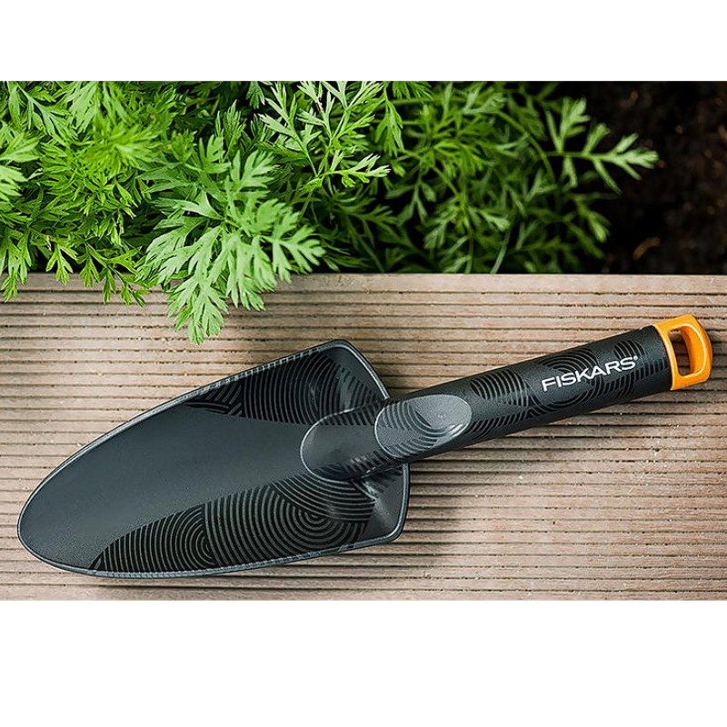 Fiskars Garden Trowel is an ergonomically designed gardening tool, ideal for cultivating, planting and loosening soil. It is made of high-quality fiberglass-reinforced polyamide, which is extremely durable and can withstand loads of up to 35 kg, while being resistant to temperatures from -40° to +150°. The material is fully recyclable, making it an eco-friendly choice.