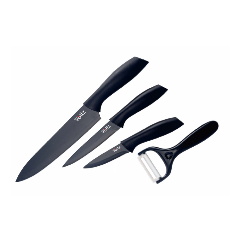 The Oliver Voltz OV51633B4G knife set combines style, efficiency and reliability - everything you need for any modern kitchen. It includes three basic knives and a peeler that cover all everyday needs - from precise cutting to peeling vegetables and fruits.