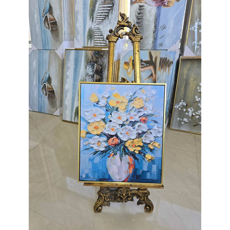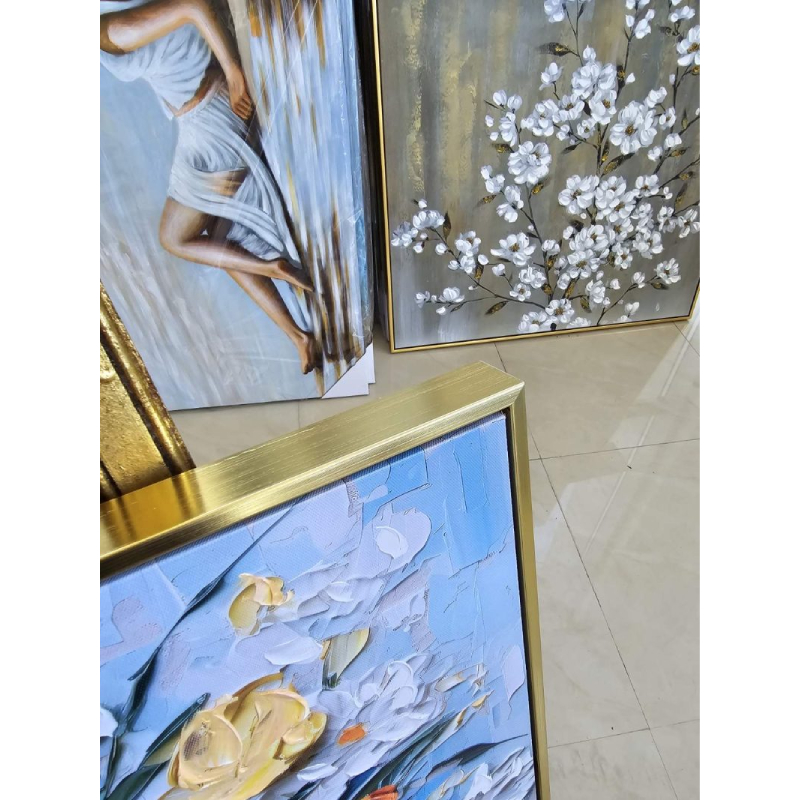 Made on canvas and finished with a gold frame, the painting exudes elegance and style. It is a suitable accent for both contemporary and classic interiors and can be placed in a living room, bedroom, hallway, office or hotel space.