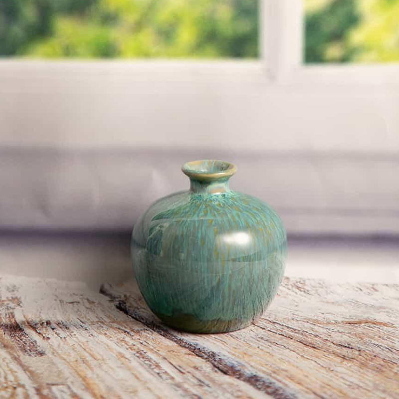 A 9.5 cm tall green vase is a fresh and elegant decorative accent that brings a sense of nature and harmony to any interior. The rich green hue adds vitality and is easy to combine with different furnishing styles.