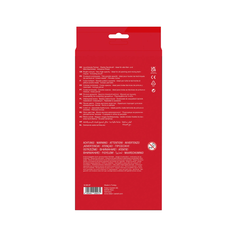 Faber-Castell watercolor paints in a set of 21 colors are a classic product, known and used by generations of artists, students and drawing enthusiasts. They offer bright and intense colors with excellent coverage and smooth application on paper and cardboard. The set is suitable for both school activities and creative projects and homework.