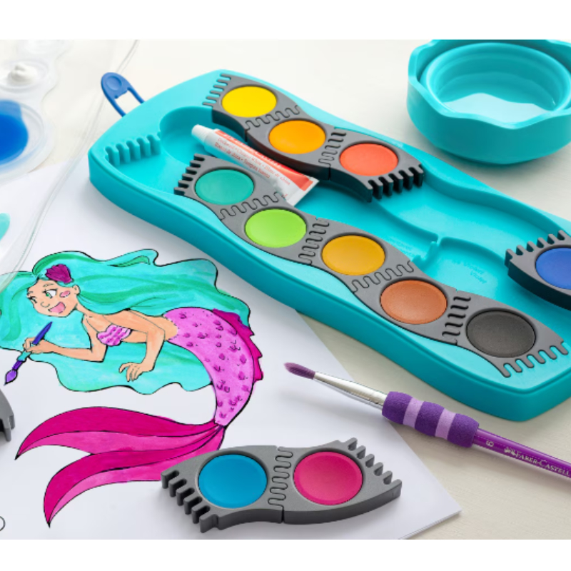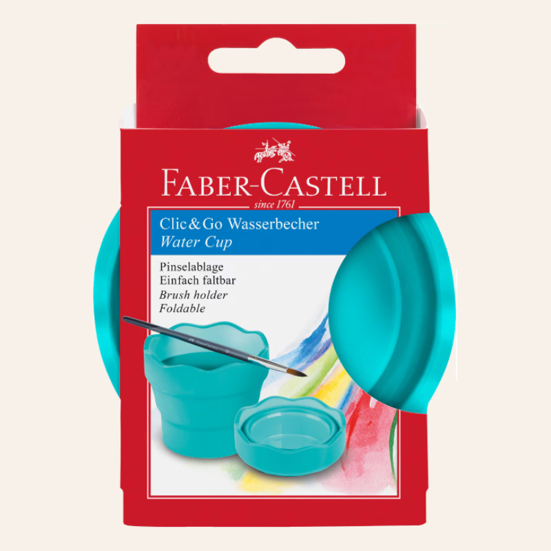 The Faber-Castell Clic&Go drawing cup is a practical and convenient accessory for anyone who paints with watercolors, gouache or other techniques. Its main feature is the foldable design, which allows it to be stored compactly and does not take up space in a bag or pencil case. This makes it ideal for travel, school and drawing outside, while at the same time protecting other materials from getting wet and getting dirty.