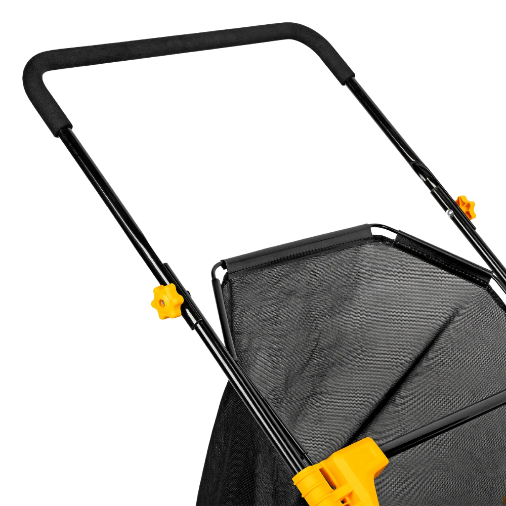 The DENZEL 100L mechanical leaf collector is a practical and environmentally friendly solution for cleaning your garden, yard or lawn. It is designed to effectively collect fallen leaves, grass clippings and small branches without requiring fuel or electricity, making it completely silent and environmentally friendly. With a capacity of 100 liters, this leaf collector allows for quick and convenient collection of waste, while ensuring easy maneuverability and operation on different surfaces.
