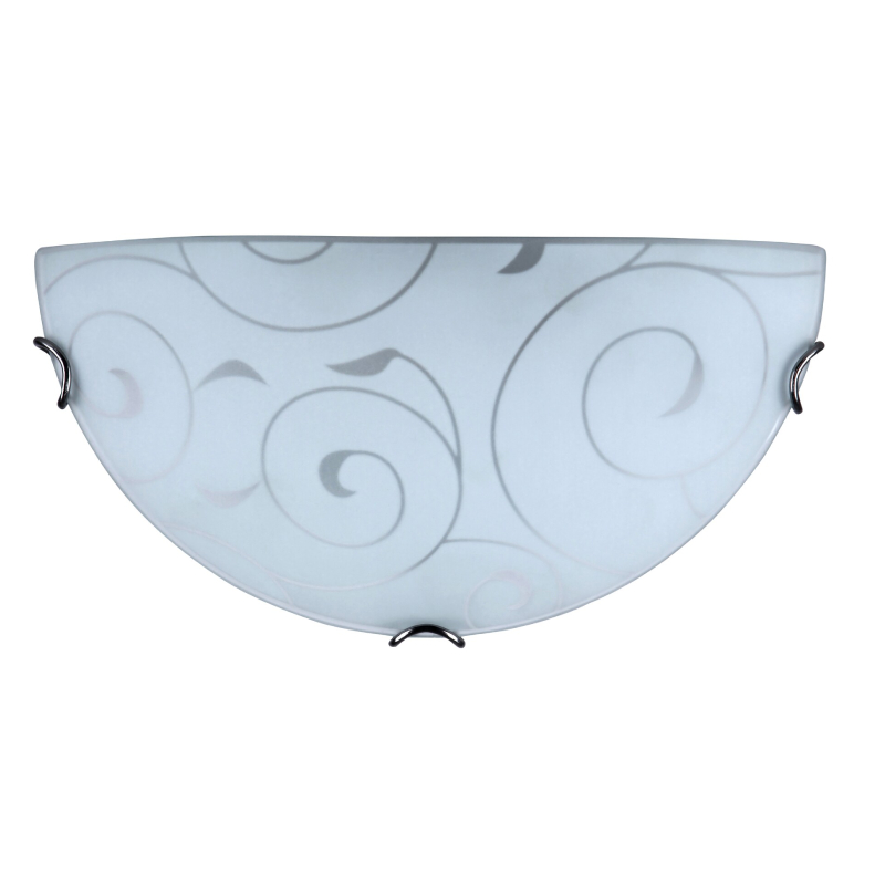 - Color: White glass with decorative pattern, chrome-plated locking element