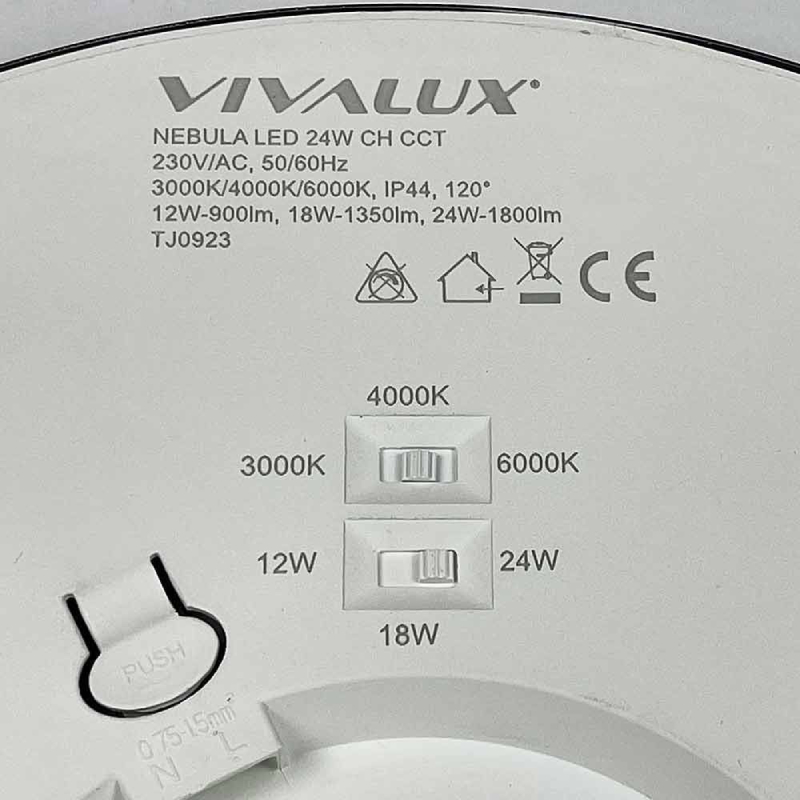 The modern LED ceiling lamp NEBULA from VIVALUX combines elegant design, adjustable power and variable color temperature, making it an extremely flexible choice for lighting any interior space. Thanks to the IP44 moisture protection, it is suitable for damp rooms such as bathrooms, kitchens and wet rooms.