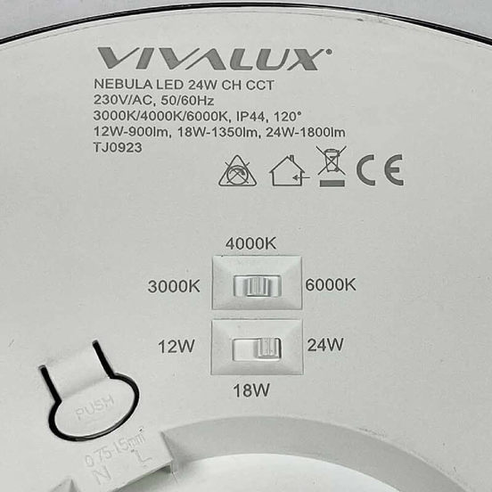 - Luminous flux: 12 W:900 lm; 18 W:1350 lm; 24 W:1800 lm