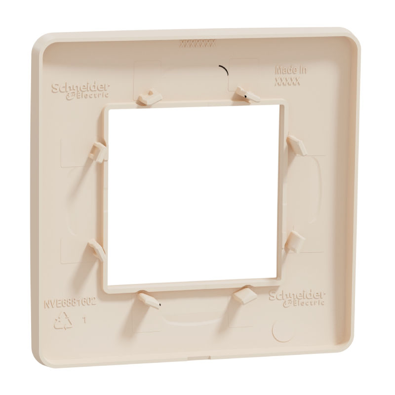 The single decorative frame is designed to be combined with switches and sockets from the New Unica series by Schneider Electric. It is suitable for horizontal and vertical installation, with a glossy finish and made of UV-stabilized thermoplastic ABS. With dimensions of 85 x 85 x 10 mm and a classic beige color, the frame gives a finished and aesthetic look to any electrical installation.
