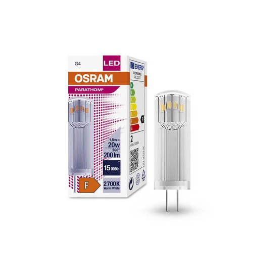 OSRAM Parathom PIN CL20 G4 1.8 W 2700 K is a compact and economical LED pin lamp. With its compact size and warm white light, it is an ideal solution for decorative and accent lighting.