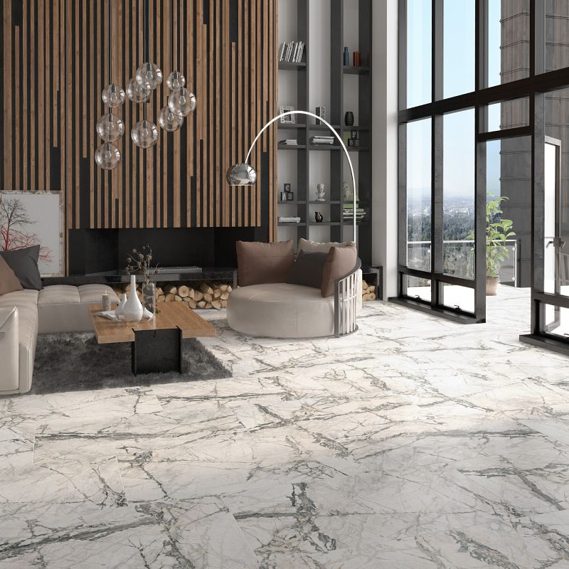 Porcelain tiles Arabesque 6406 R 60 x 120 cm polished white marble (1.44 sq.m/carton).