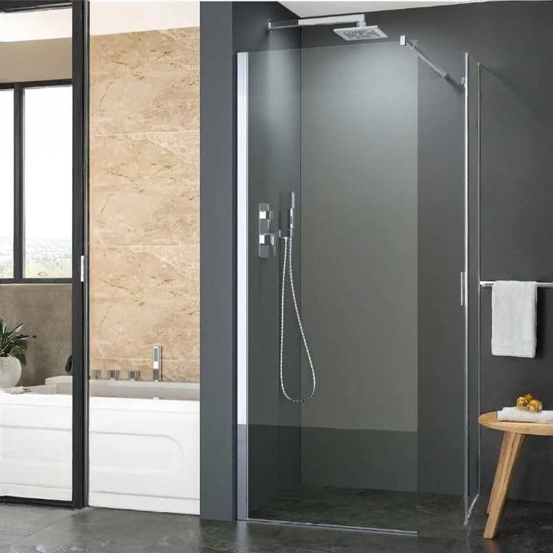 Made of 8 mm tempered clear glass with a NANO coating that repels water and dirt, the shower screen guarantees long-lasting cleanliness and a flawless appearance. The included telescopic arm (70-120 cm) offers additional stability, and the reversible design allows for left or right-hand mounting according to your preference.