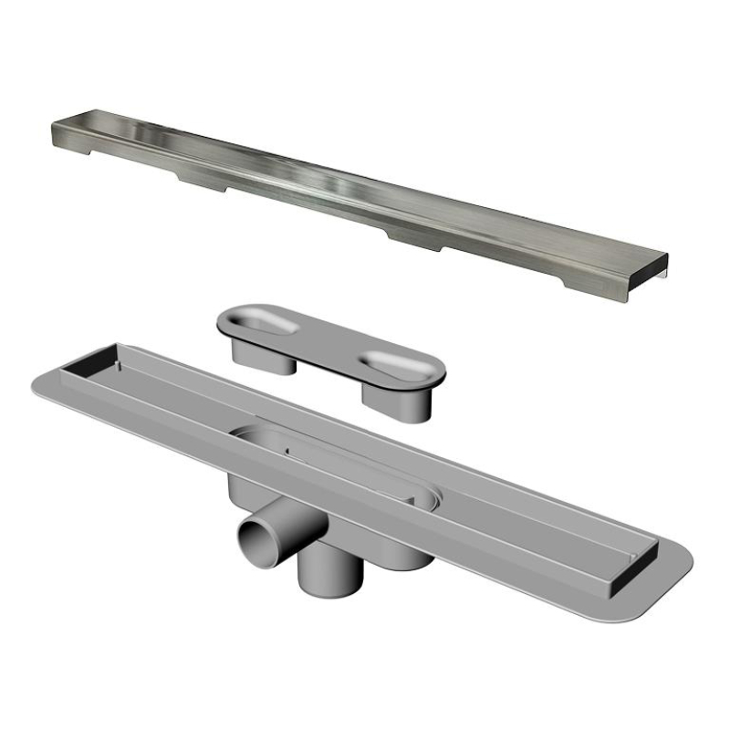 Akvo modern linear floor drain with a length of 400 mm and a combined drain, designed for stylish and functional bathrooms. It is made of high-quality polypropylene with a dense stainless steel (INOX) grid, which guarantees corrosion resistance and a long service life.