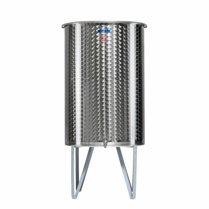 This container is an ideal choice for anyone who wants to produce quality homemade wine in a controlled and protected environment. It is suitable for both fermentation and long-term storage of wine or other liquids used in the food industry. The set includes: 300 liter stainless steel container Floating lid with silicone seal Stainless steel dust cover Pump with pressure gauge 4-legged galvanized stand (30 cm high) Stainless steel drain tap 1 1/4″