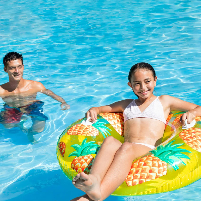 Turn every day at the pool or beach into a tropical treat with the INTEX Tropical Fruits Inflatable Swim Ring. With a fresh design and comfortable handles, this swim ring is perfect for teens and adults who want style and comfort in the water.