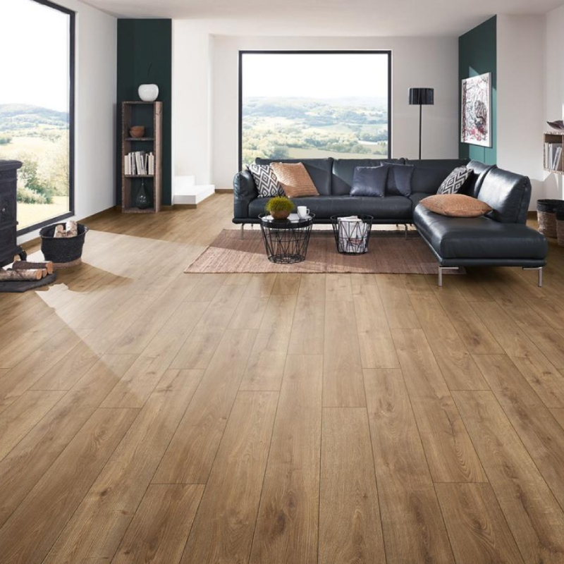 The laminate has an AC4/32 wear resistance class - a guarantee of stability, protection from minor scratches and a long life in daily use. The realistic wood structure and the four-sided bevel (V4) emphasize the natural look of the floor, giving it a solid wood feel.