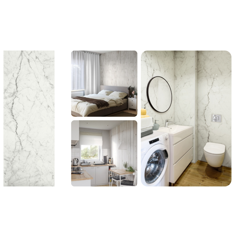 Motivo BLANK MARBLE wall panels are a stylish and practical solution for a quick interior transformation. With their help, you can create accent walls or refresh any room - from the living room and bedroom to the kitchen and hallway. The panels are waterproof, durable and easy to install, without the need for specialized tools.