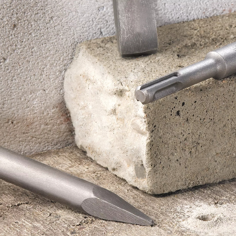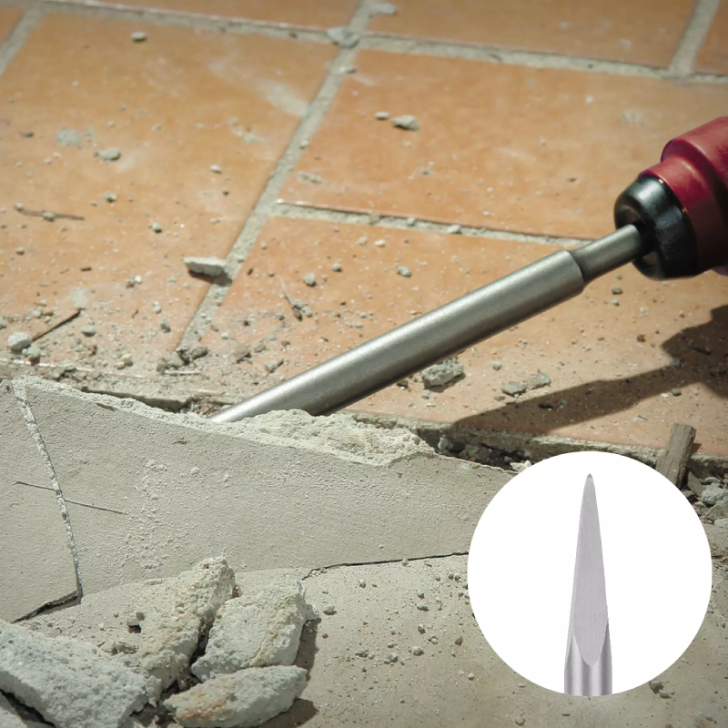 - Pointed chisel - 250 mm: ideal for spot chiseling and breaking up hard surfaces