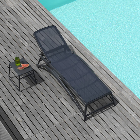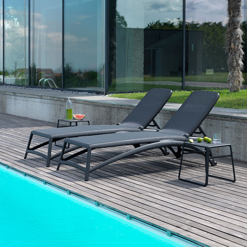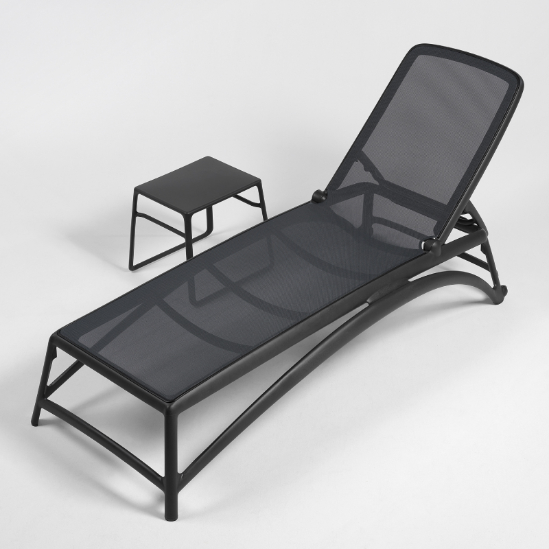 Atlantico chaise longue by NARDI. Without armrests. With a frame made of PPR - polypropylene and a seat made of breathable synthetic mesh fabric (replaceable) in Antracite color.