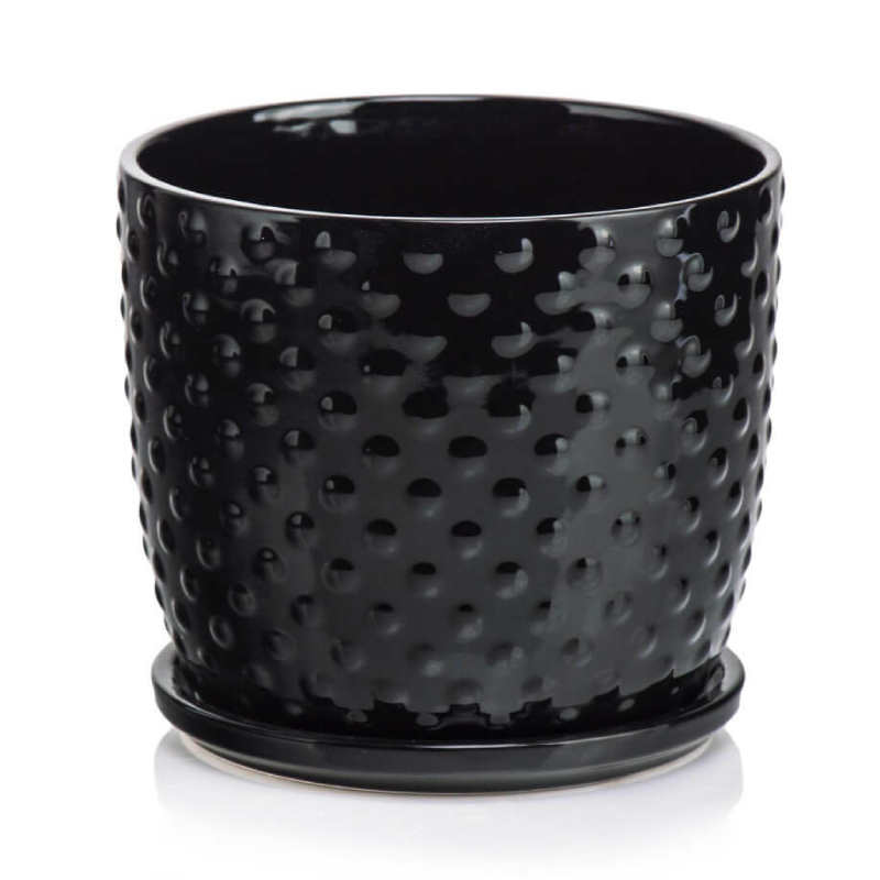 Ceramic pot with a base from the Amsterdam series by the Polish brand POLNIX. The plate has a diameter of 13 cm and is black in color. Handmade. With a drainage hole for water drainage.