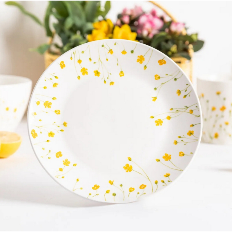 The dessert plate from the Marigolds series by Altom Design is a perfect choice for serving sweet treats, fruit, or snacks. Made of high-quality porcelain, it combines strength and finesse, and its colorful design brings freshness and elegance to any table.