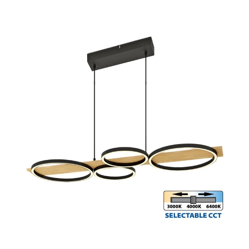 The MATTEO-P LED chandelier is a perfect choice for stylish and efficient lighting. The black round light elements are harmoniously arranged on a natural wood panel, adding warmth and elegance to the interior. Suitable for modern homes where geometric shapes and natural materials are part of the design.