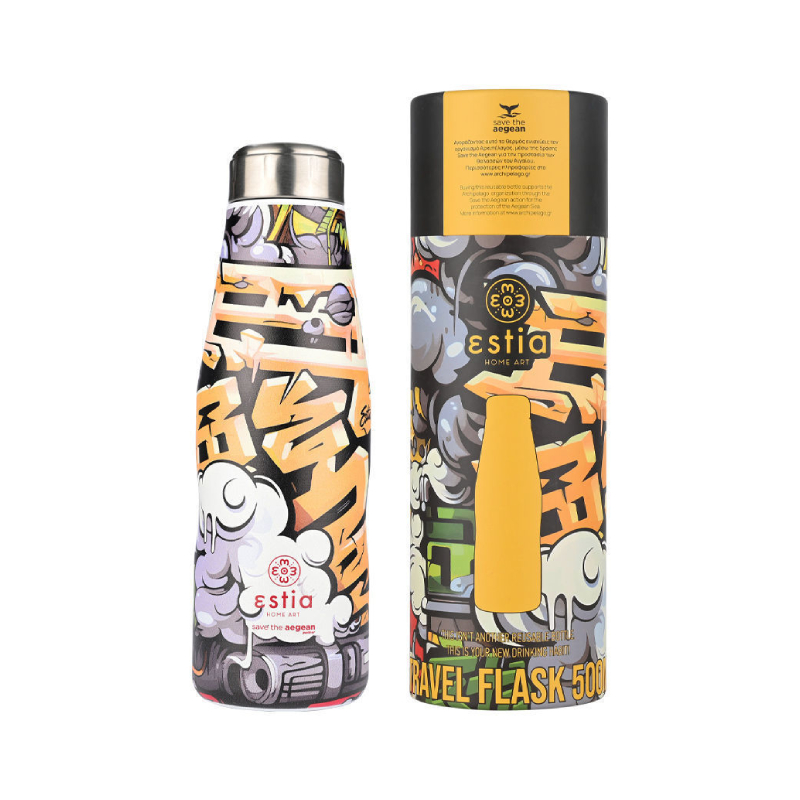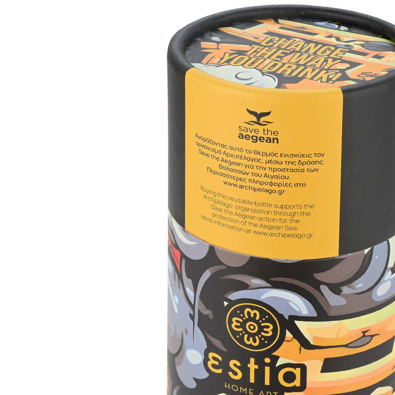 The ESTIA "Save the Aegean" travel thermos bottle is designed for people with an active lifestyle who value convenience and stylish design. With compact dimensions and ergonomic curves, the bottle is easy and comfortable to hold, while adding an elegant accent to any travel, sports or office kit. It is made of high-quality 18/8 stainless steel both inside and out, which ensures that drinks retain their natural taste and aroma without unwanted odors or reactions with the material.