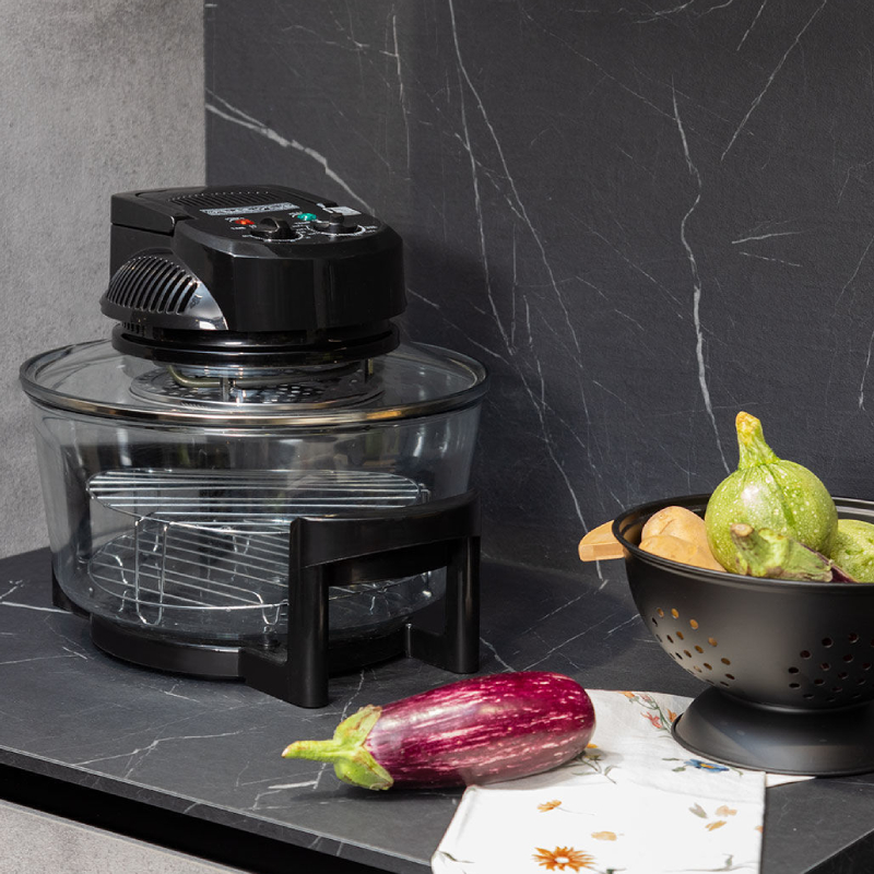 The Crystal Cook convection oven from Estia is designed to combine power, efficiency and convenience in a compact form. With a maximum power of 1400 W and hot air circulation, it ensures even and fast cooking of food, whether you are roasting meat, vegetables or pastries. The thick glass body is resistant to high temperatures and makes it easy to monitor the cooking process, while being easy to clean.
