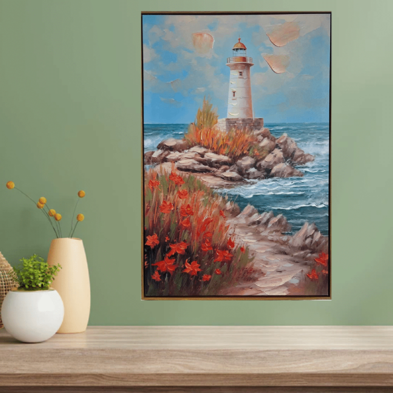 The painting is a harmonious combination of colors, shapes and emotions, which gives individuality and sophistication to your home. The stylish marine motif with a lighthouse creates a feeling of calm and inspiration, while emphasizing the beauty of nature and light.