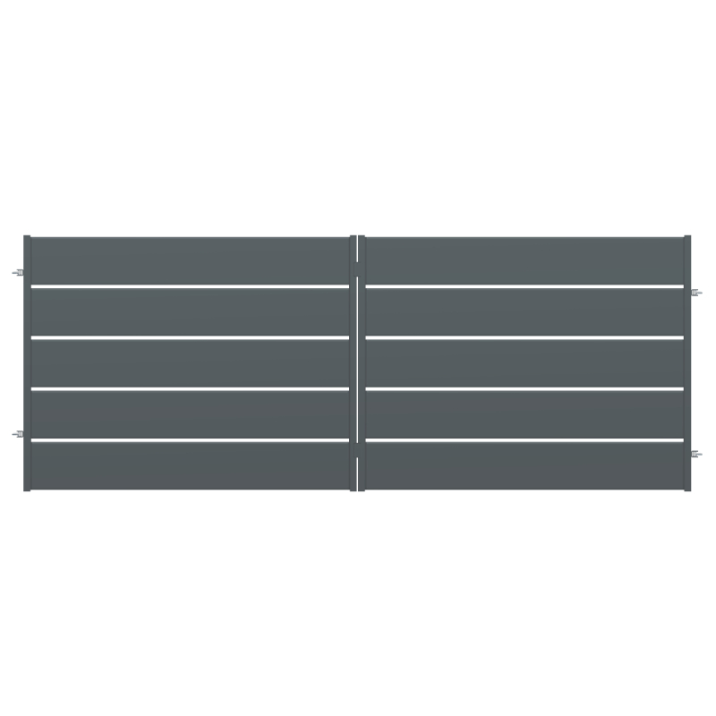 The double-leaf fence gate ANDORRA by POLBRAM combines modern design, high strength and long-lasting protection. Made of horizontal galvanized panels and a stable metal structure, it is an excellent solution for fencing residential properties, yards and modern buildings. Its elegant appearance in anthracite color (RAL 7016) fits harmoniously into modern architecture and gives a finished look to the space.