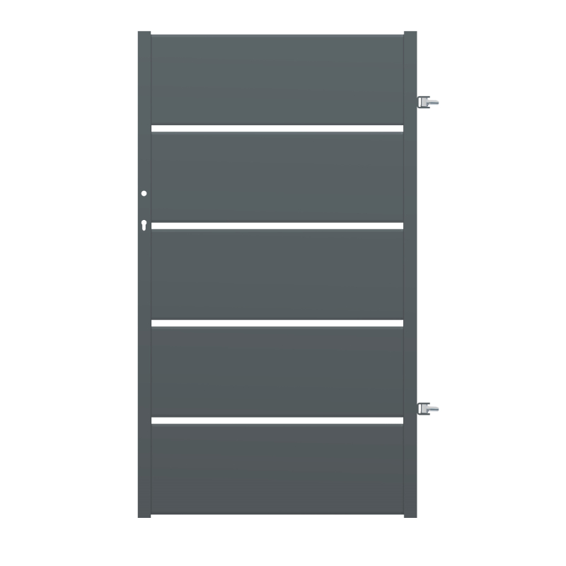 The ANDORRA fence gate by POLBRAM is a practical and stylish solution for any yard, garden or residential property. The model features a modern design with horizontal panels and is made of high-quality galvanized steel, which guarantees excellent resistance to outdoor conditions. Thanks to its elegant anthracite color (RAL 7016), the gate combines perfectly with modern fencing systems and gives a finished look to the space.