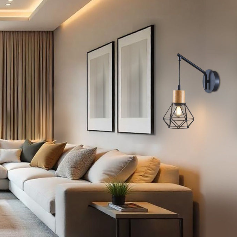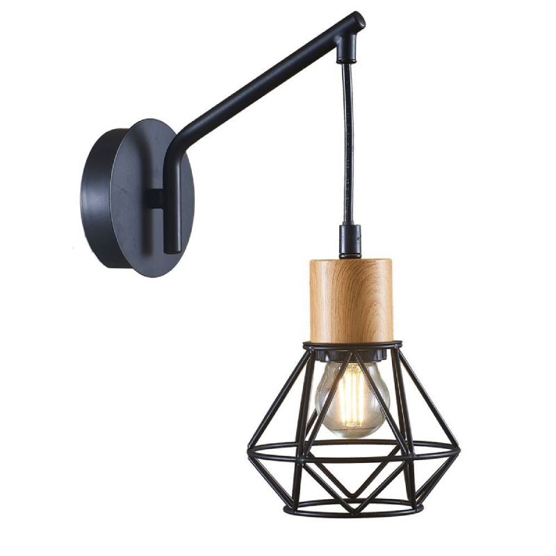 The FRODO wall lamp by VIVALUX impresses with a modern vintage design, combining a black metal body and a decorative wooden base. Its compact dimensions (H280 x L230 x D130 mm) make it suitable for wall mounting indoors, providing stylish and cozy lighting. The model is ideal for bedrooms, kitchens, dining rooms, living rooms, as well as hotel rooms and restaurants.