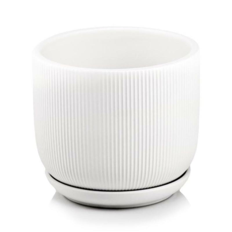 Ceramic pot 20 cm white with base Barcelona POLNIX. The ceramic pot with base is a practical and stylish solution for growing plants at home or in the office. Made of quality glazed ceramic, it provides durability and an elegant appearance.
