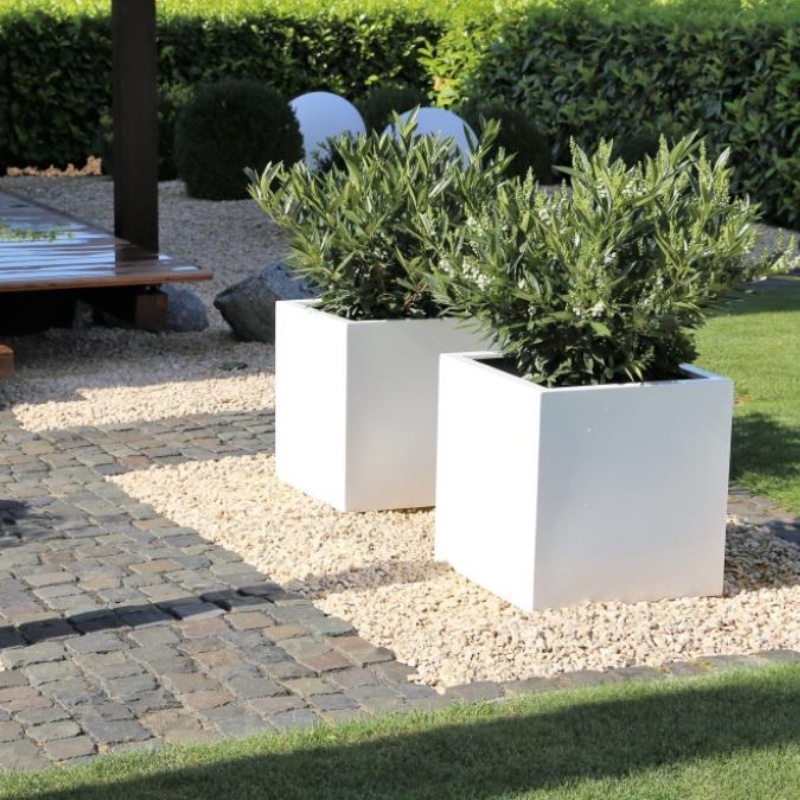 Fiberglass square pot 40 cm white POLNIX. This fiberglass pot is a modern and extremely durable solution for growing plants both indoors and outdoors. The material from which it is made is known for its strength and durability, even used in industries such as shipbuilding and wind energy.
