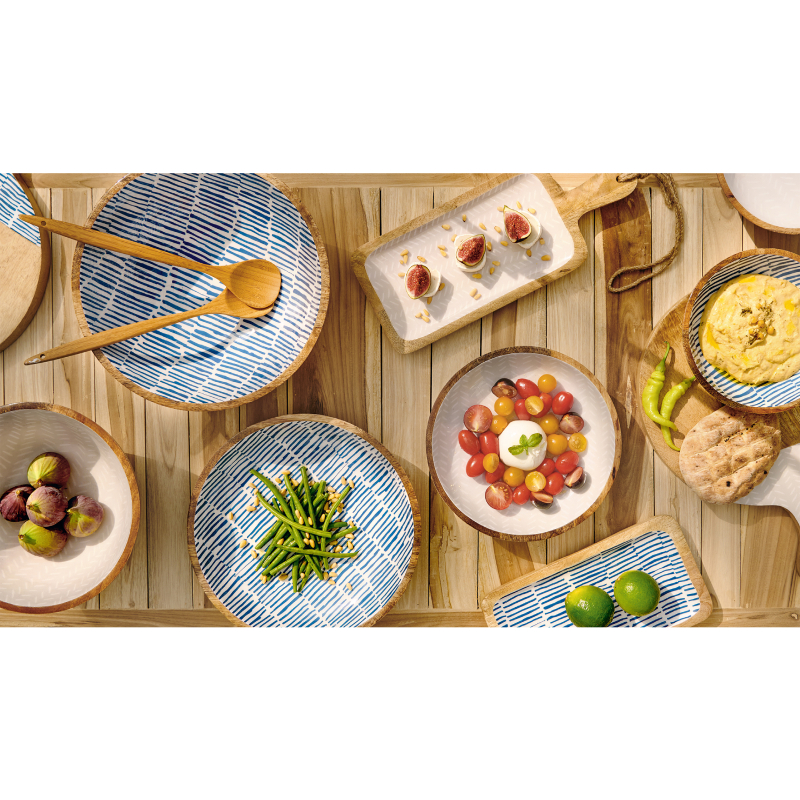 The bowl is made of mango wood - a strong and durable natural material that is distinguished by its beautiful texture and durability. The blue exterior color creates a stylish contrast with the natural wood tone and gives the product a modern and fresh look.