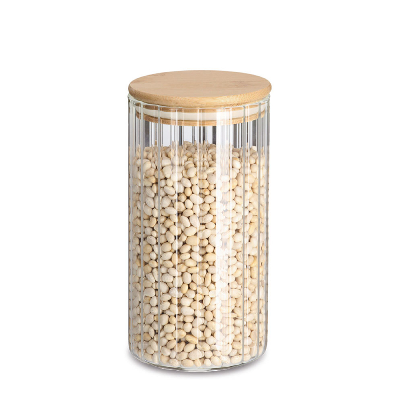 Кутия за съхранение Ø 9х18см прозрачна с бамбуков капак ZELLER