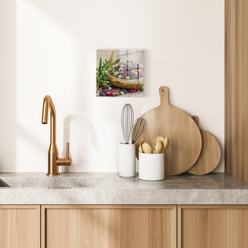 The glass painting "Spice" is a stylish decorative element that adds character and mood to the interior. The modern design and rich colors create an interesting visual accent that easily fits into both contemporary and classic interiors.