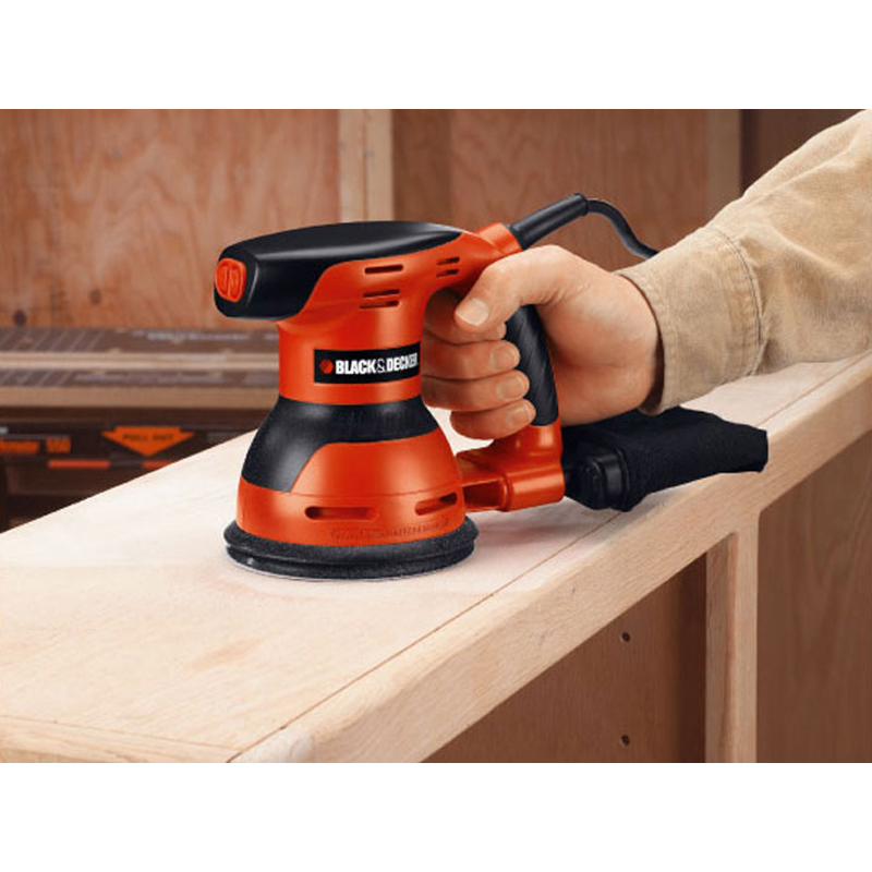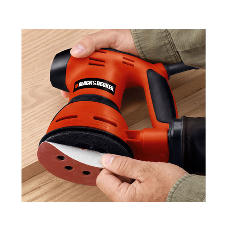 Eccentric sander Black&Decker KA198 is a compact eccentric sander with a power of 260 W. Sanding without scratching with high productivity when removing the material. It has 1 speed at 13,000 rpm. The size of the sandpaper is Ф125mm. The handle has a soft anti-slip gel coating for comfortable and easy handling during operation. Simultaneous vibrating and rotary grinding guarantees excellent work results. Eccentric sander Black&Decker KA198 has a function Dust collection and a bag that collects residual dirt.